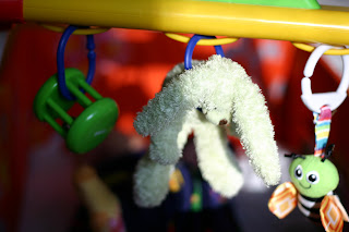 Kun en pysty keskittymään Unnan puuhiin, laitan hänelle "viihdekeskuksen" eli sellaisen härvelin,jossa on kaikenlaisia liikkuvia osia. Onneksi roikkuvia osia voi vaihtaa, tai Unna kyllästyisi.